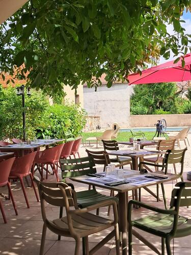 Stéphanie vous accueillera au sein de sa salle entièrement décorée avec goût, ou sous notre grande véranda ouverte sur l'arrière-cour. Dès les beaux jours, profitez de notre belle terrasse !